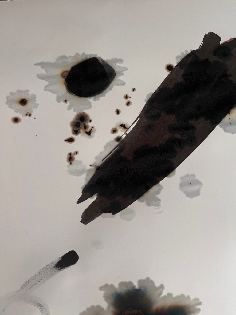 My experiments however, were abysmal! The magnesium would not dissolve in the ink and over time became really sticky and gooey. I had to dissolve the flakes in a little water first, and then add them to the ink. Two months later and the ink is still not dry where it has mixed with the magnesium, which I’ve somehow managed to get into my keyboard of my laptop so walk away from work or research with black smudges on my fingers.